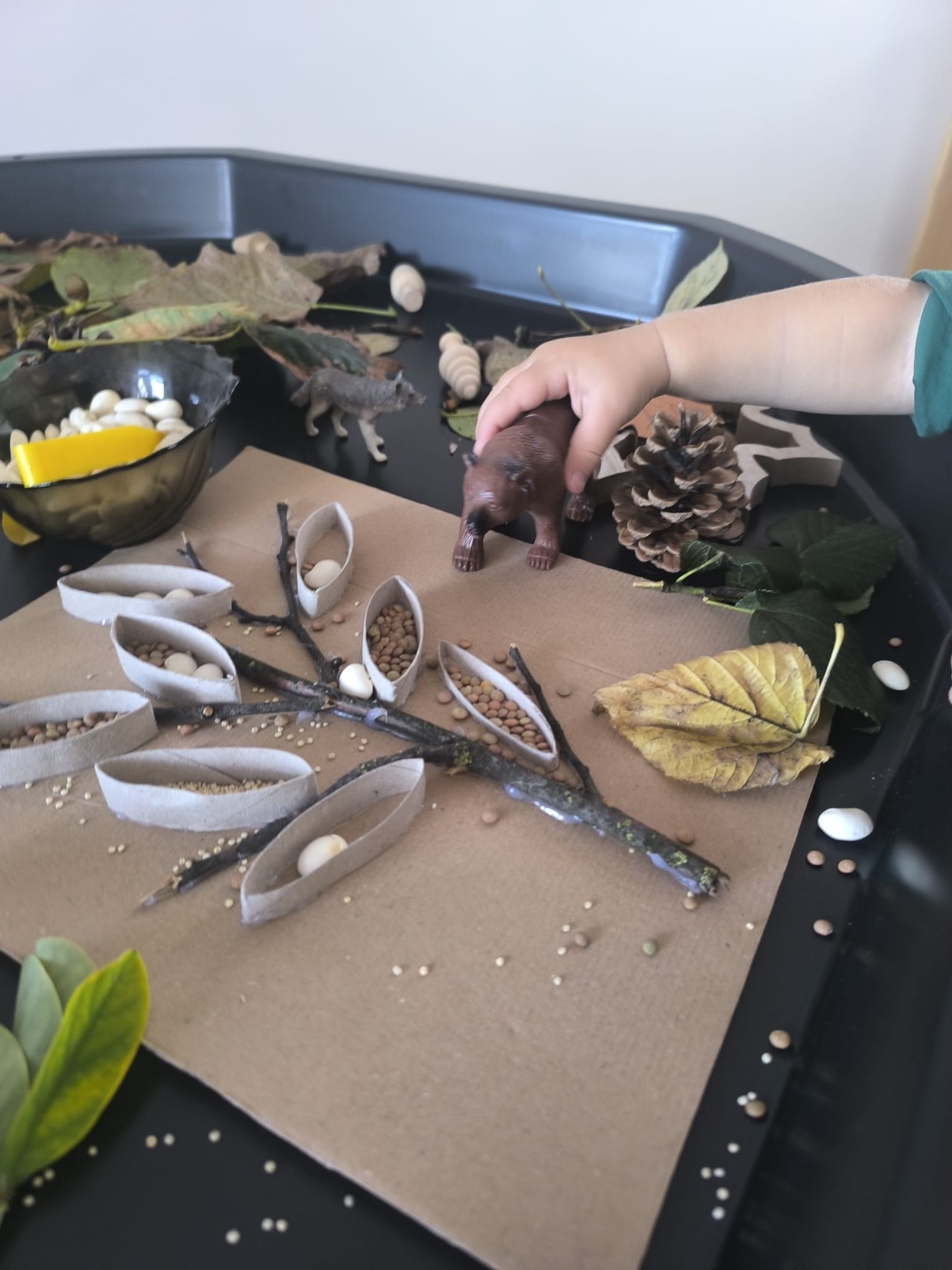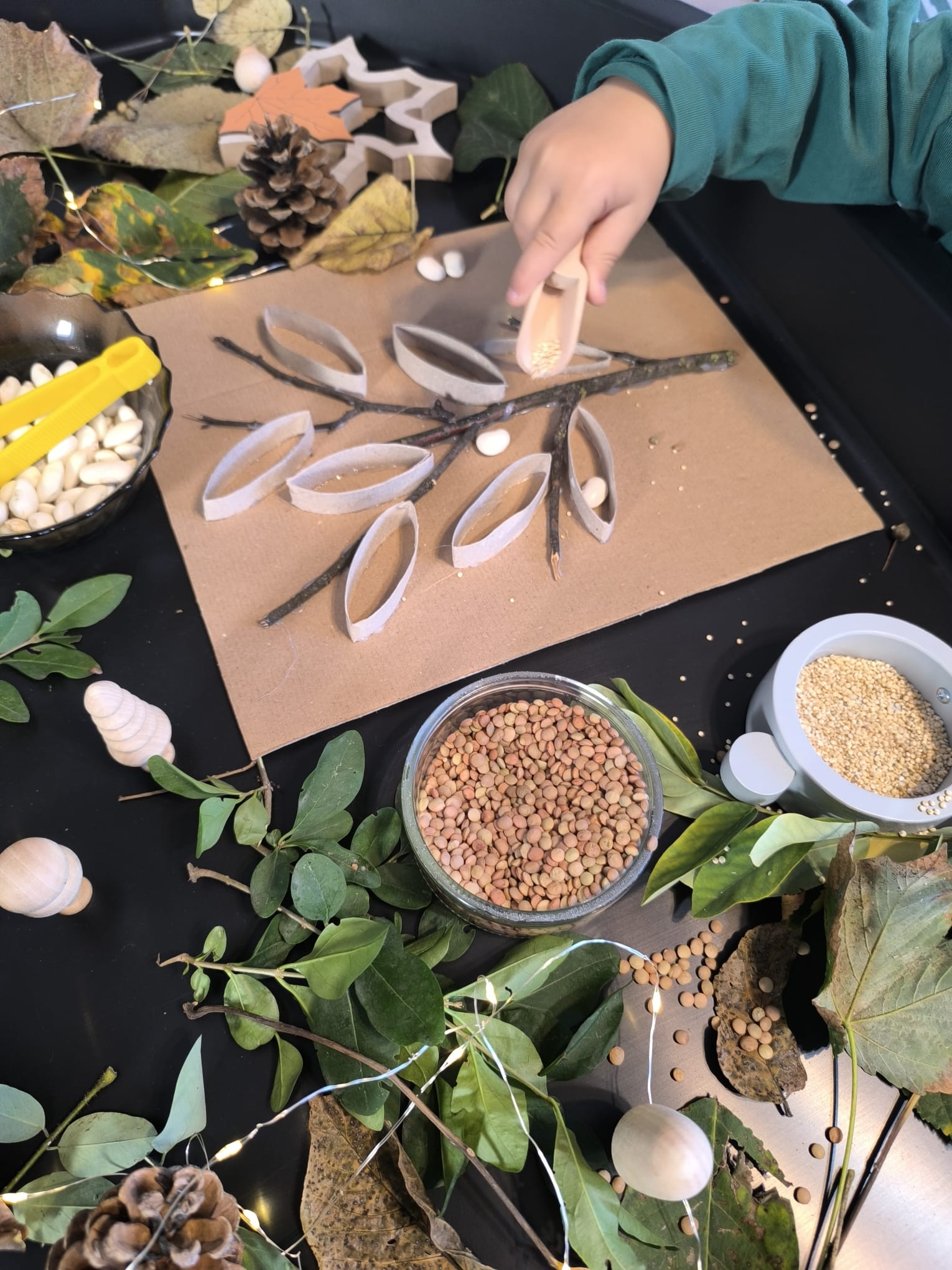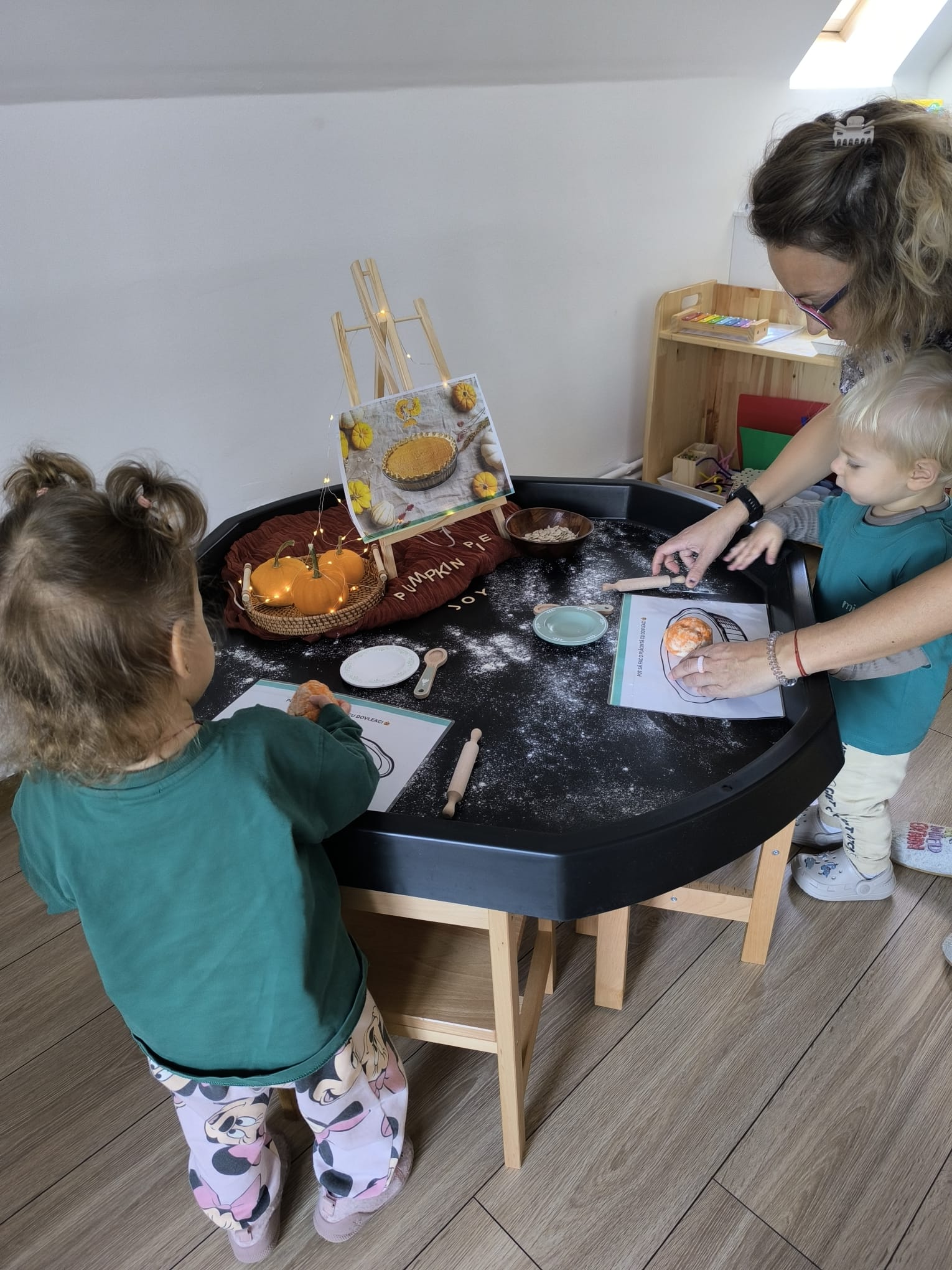 Avem o grămaaaadă de activități, re regulă tematice, unde bucuriile mici combină realitatea cu imaginarul. Câteodată fac biscuiți pe bune, gata de mâncat, alteori ”hrănesc” omide de hârtie sau creează cartofi desenați ajutându-se de jumătăți de cartofi reali și te mai miri ce chestii interesante mai ajung pe masa lor.