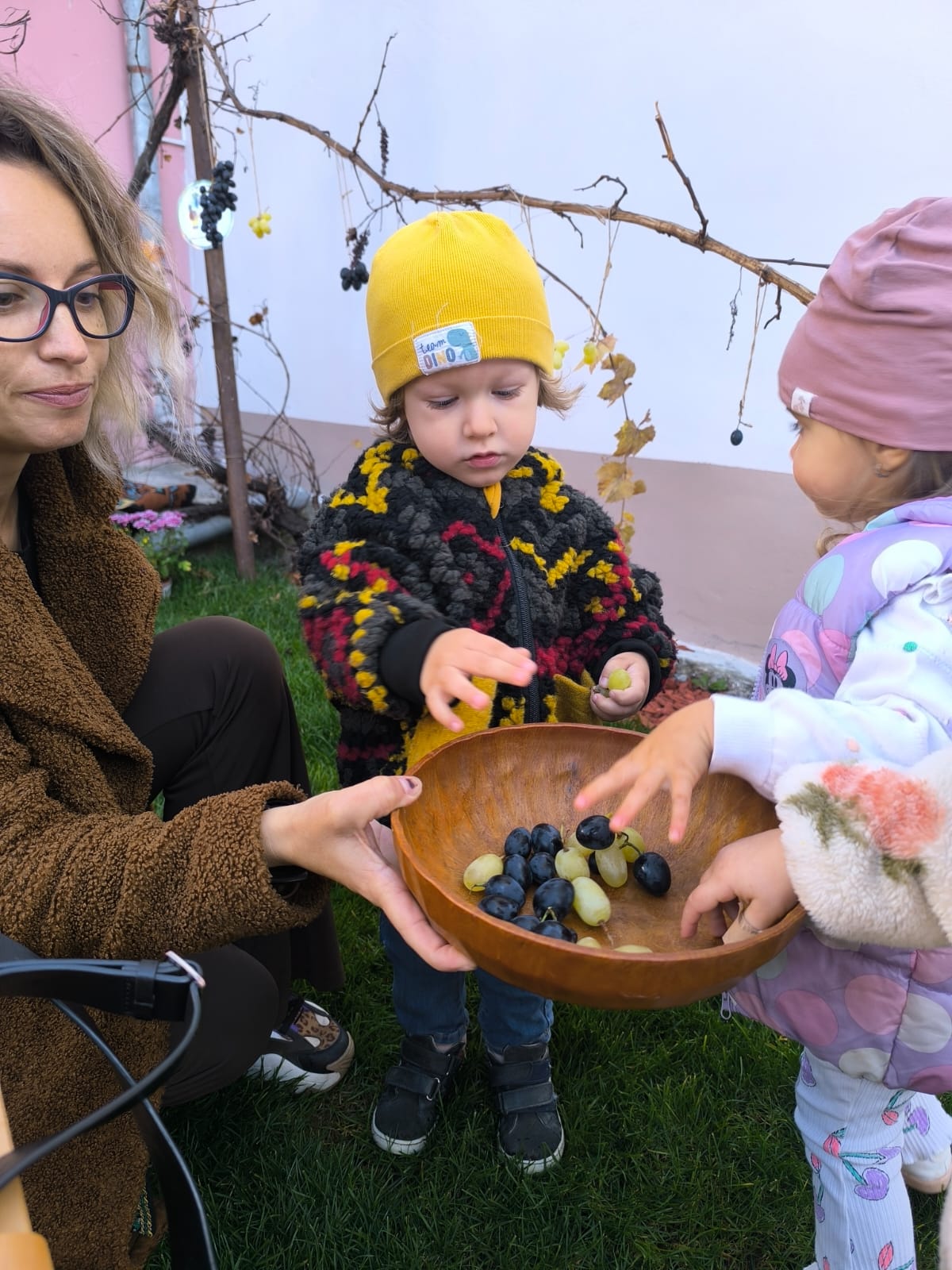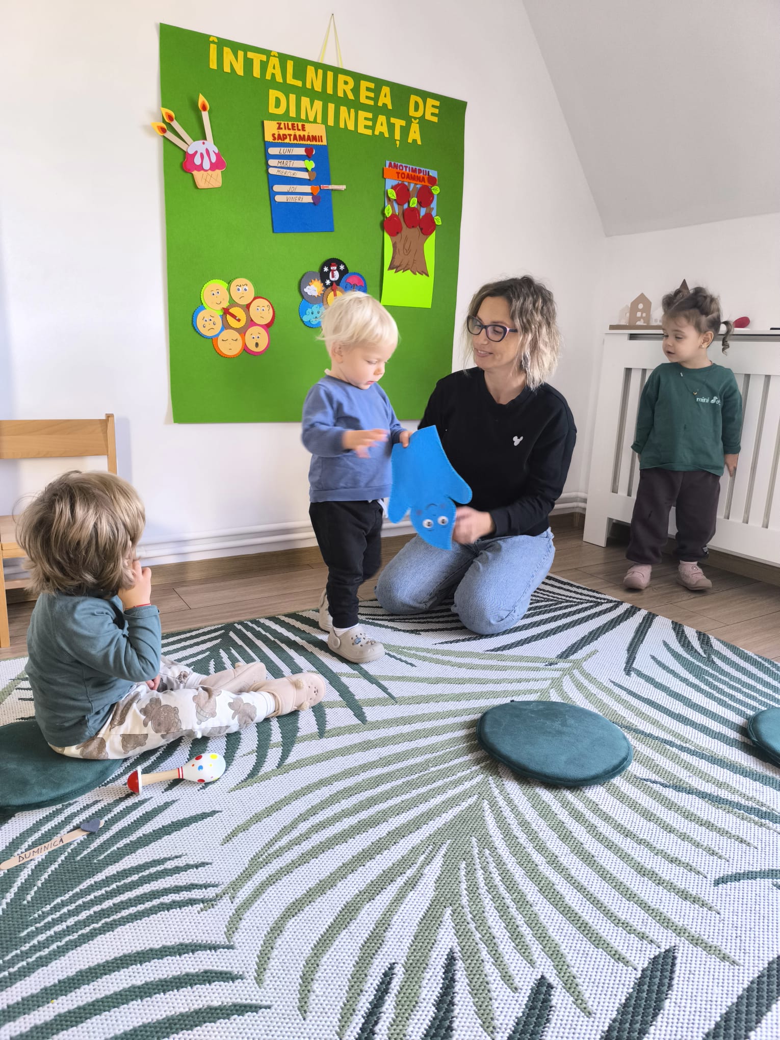 Altfel, mai spunem o grămadă de povești, le creăm din fetru sau le citim din cărți, udăm plante, ieșim în aer liber la tobogan, motocicletă sau la iarbă verde și multe alte, printre care și joaca liberă, unde fiecare optează pentru activități la alegere.